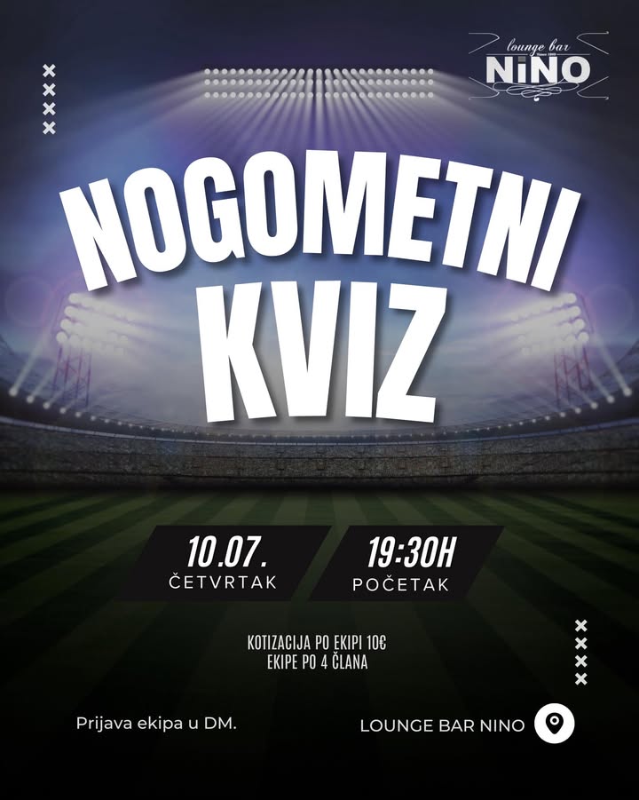 – Pridruži nam se u večeri punoj sporta, znanja i zabave! Očekuje te odlična atmosfera i izazovna pitanja – poručili su iz Lounge Bara Nino.