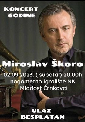 Na igralištu Mladosti 02. rujna u Črnkovcima, tamošnji nogometni klub proslavit će svoj 75-ti rođendan. Tom prigodom (ujedno se slavi i Dan općine Marijanci) u Črnkovcima će nastupiti Miroslav Škoro. Početak koncerta najavljen je za 20,oo sati, a ulaz za sve je slobodan.