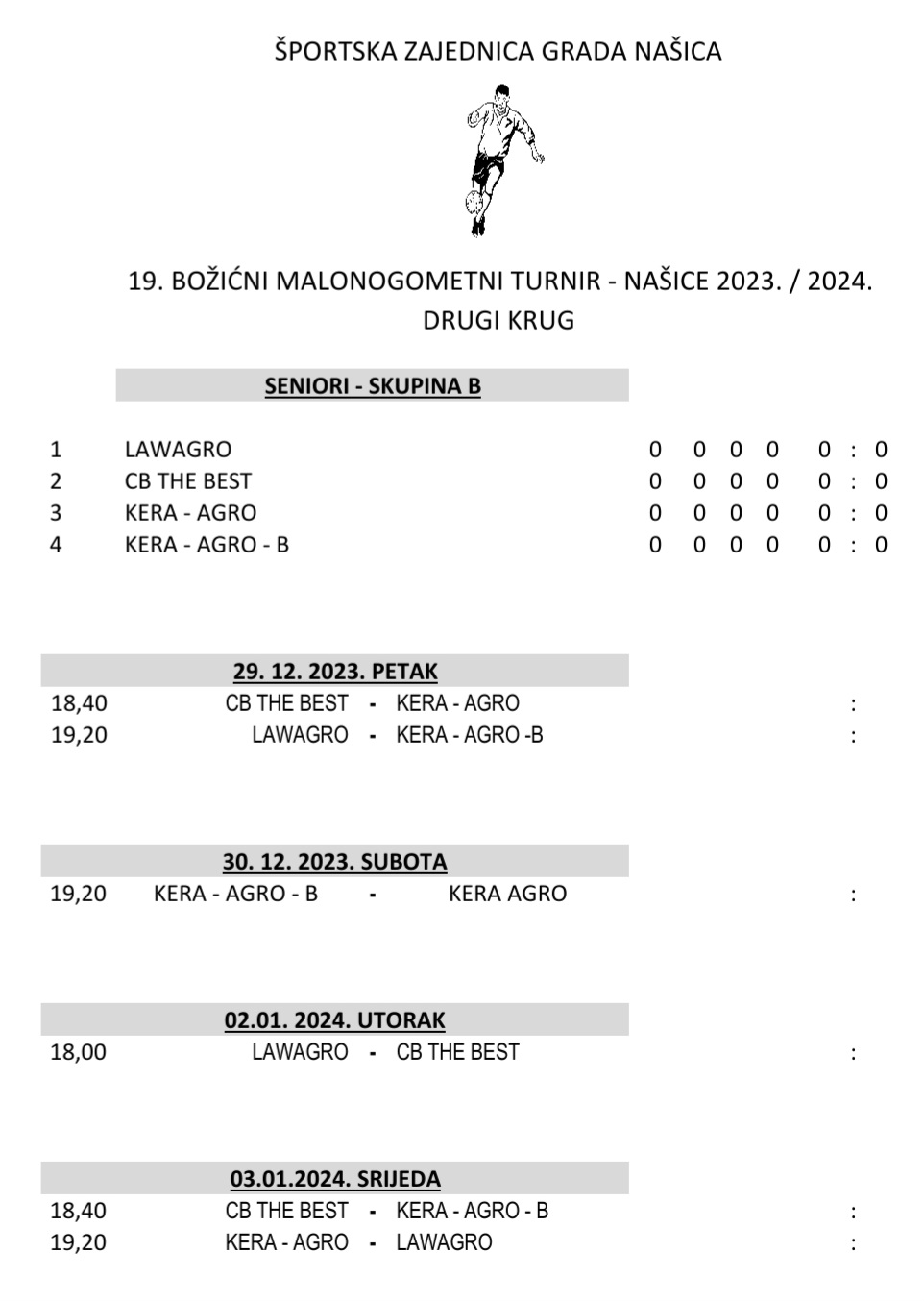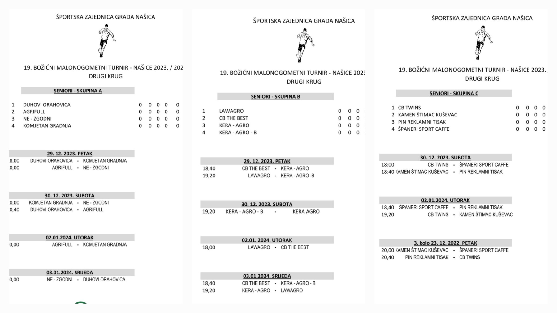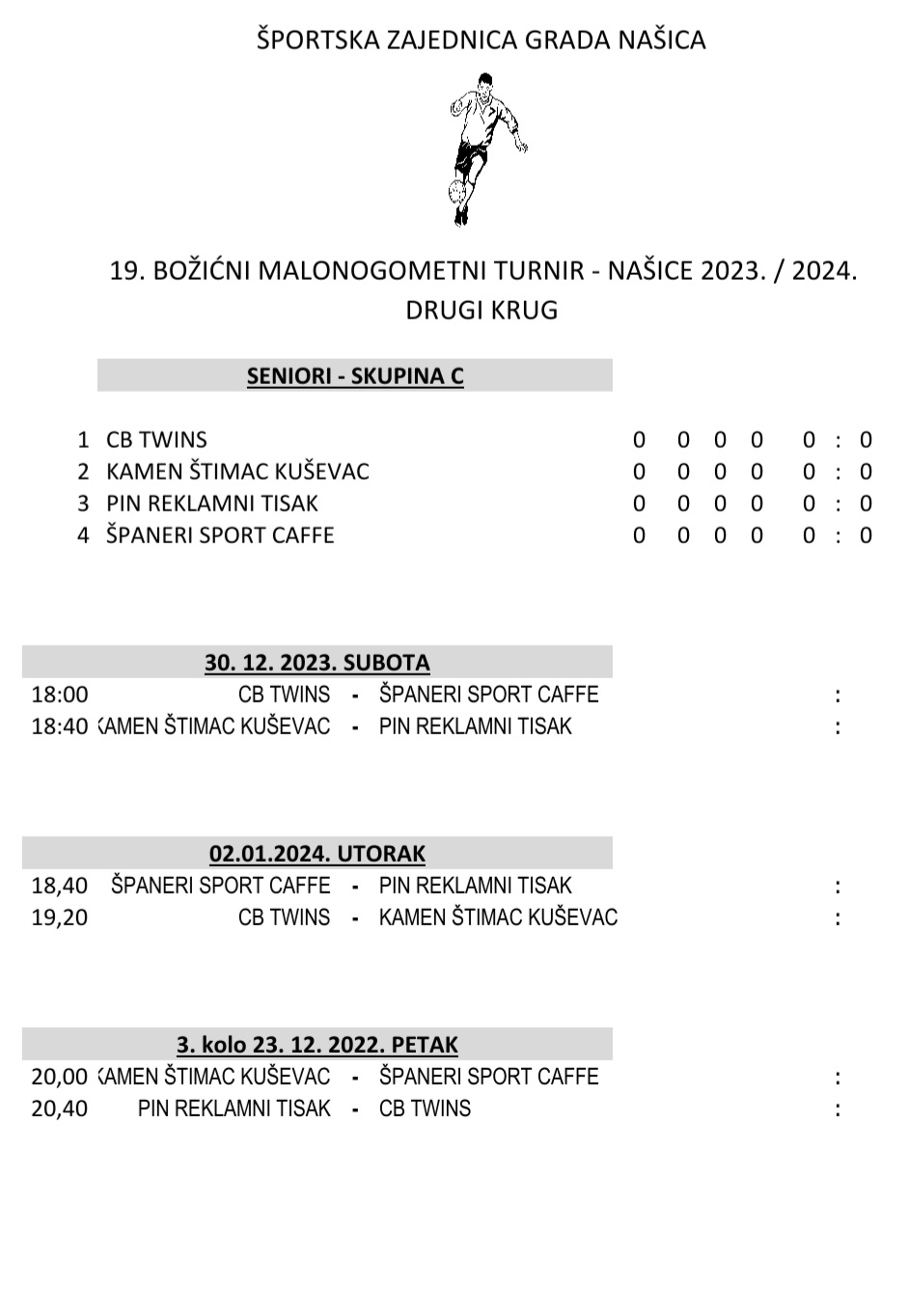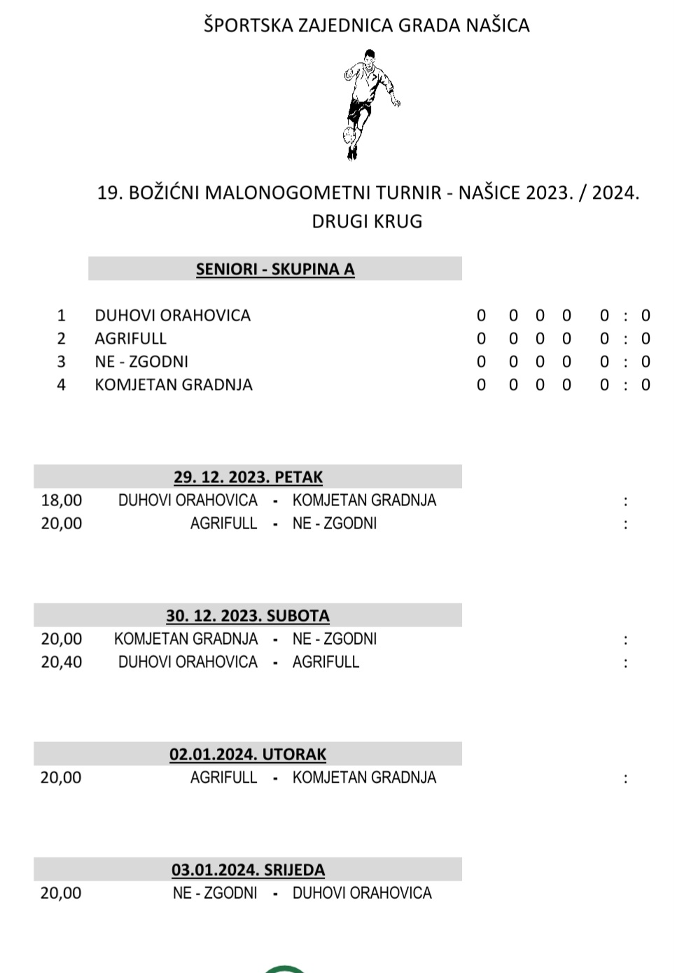 Sutra kreće drugi natjecateljski krug na 19. Božićnom MNT koji se u organizaciji Športske zajednice grada Našica, igra u Našicama. Večeras je, a nakon odigranih posljednjih utakmica prvoga kruga, obavljeno ždrijebanje drugog kruga kod seniora.