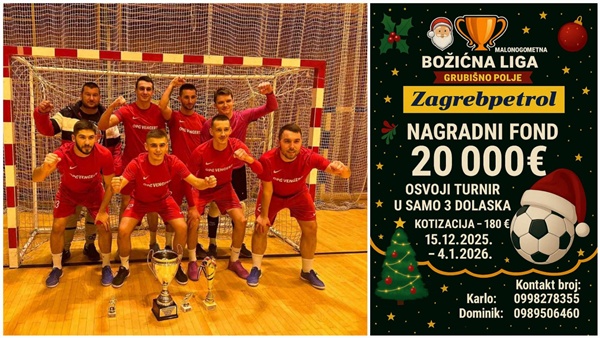 Aktualni pobjednici Božićne malonogometne lige u Grubišnom Polju, momčad OPG Vengert iz Čačinaca, spremni su za novi pohod. Prošle su godine impresionirali publiku i organizatore odličnim partijama i zasluženim osvajanjem turnira, a sada dolaze braniti primat na još jačem i atraktivnijem izdanju turnira, koji će se održavati od 15. prosinca 2025. do 4. siječnja 2026.