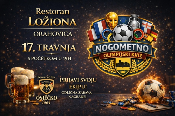 Kviz se nastavlja u petak u 19 sati u Restoranu Ložiona u Orahovici, a zbog ograničenog prostora prijave su obvezne i moguće ih je izvršiti najkasnije do petka u 12 sati putem inboxa stranice 33515 ili na broj 098 178 55 31.