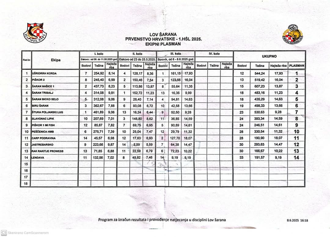 Treće kolo Hrvatske šaranske lige je iza nas. Na nepredvidivom Boroviku 14 hrabrih ekipa odmjerilo je snage u trećem kolu. Neki su se poradovali izvučenim pozicijama, no onda se ustanovilo da te pozicije nisu baš dale ono što su oni očekivali, a neki su bili razočarani i ljuti izvučenima pozicijama pa na kraju ostvarili super rezultat, ali to je Borovik i to je taj šaranski ribolov gdje ništa nije sigurno i gdje jedna sitnica odlučuje o puno toga.