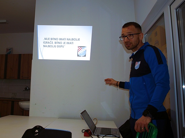 Uvodno predavanje, kakvo se rijetko viđa na ovim prostorima, održano je uz projektor, jasno definirane segmente rada i, bez imalo uljepšavanja. Dinko Puljić (39), dipl. kineziolog i nositelj PRO licence, u Slogu dolazi s ozbiljnim trenerskim stažem (Podravac, Viljevo, FEŠK, Mladost Čačinci, Jedinstvo Donji Miholjac), ali i s još ozbiljnijom filozofijom rada.